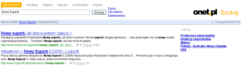 Najlepszym na to dowodem jest druga pozycja w wyszukiwarce onet.pl uzyskana po wpisaniu w niej frazy "nowy superb". Przekonaj się o tym samemu.