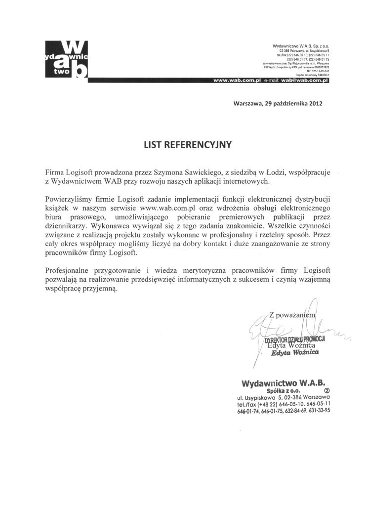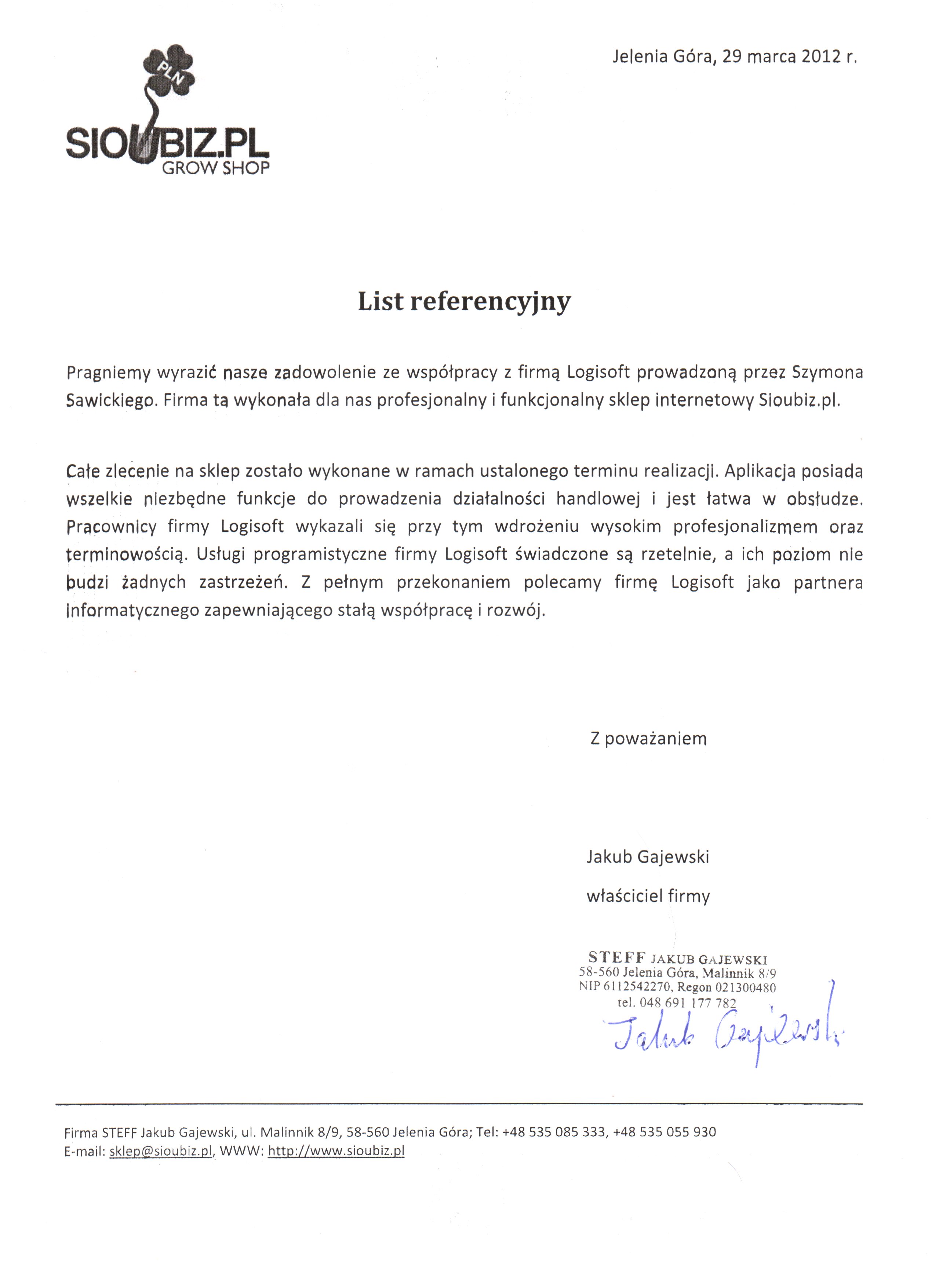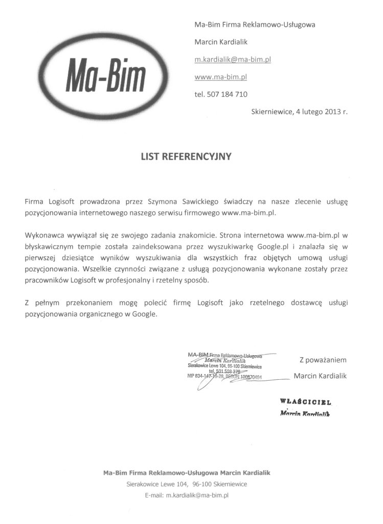 Poniżej znajdziecie Państwo 12 referencji od naszych niektórych klientów. Są one najlepszym dowodem naszej fachowej i solidnej pracy jako firmy świadczącej kompleksowo obsługę firm w dziedzinie ich aktywności w Internecie.