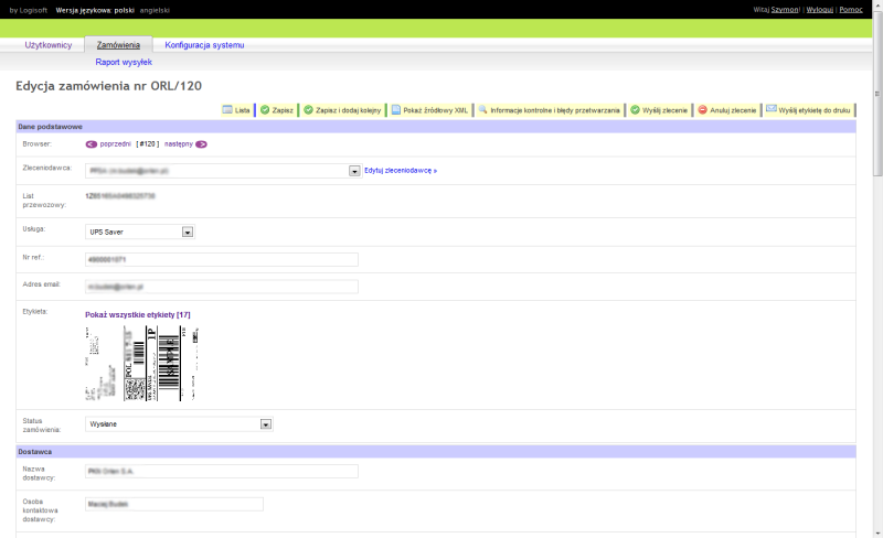 Program o tej złożonej nazwie służy do realizacji zamówień usług kurierskich w firmie UPS spływających z systemu SAP SRM, który został wdrożony dla spółki Orlen S.A.