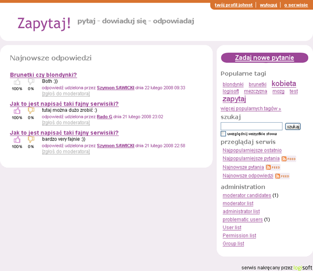 Zapytaj! to nowy serwis społecznościowy zgodny z linią aplikacji WEB 2.0. Umożliwia zadawanie pytań na różne tematy. Tematy określa się wpisując do każdego pytania odpowiednie słowa kluczowe - tzw. tagi. Użytkownicy mogą następnie udzielać odpowiedzi na postawione pytanie i określać, czy dane pytanie jest wg nich interesujące.